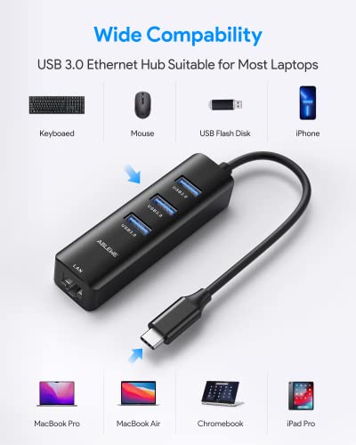 【Ampia compatibilità】ABLEWE Adattatore USB C Ethernet compatibile con laptop, tablet, telefoni con USB-C, come MacBook Pro 2021/2020/2019/2018, MacBook Air 2020/2019/2018, iPad Pro 2021/2020/2018, iPad Air 5/4, iPad mini 6, XPS 13/15/17, Surface Book 3/2/Go, Pixelbook, Chromebook, Lenovo Yoga 920/910/720, Samsung S21/S20/S10, Note 10/9, telefoni Pixel e altro ancora.