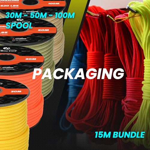MULTIUSO: Il nostro paracord di nylon è prodotto più stretto e più fluido in uso. Perfetto per i kit di tendatura, campeggio, nautica, caccia, sopravvivenza, realizzazioni di paracord come bracciali, involucri, cinture, cordini e centinaia di oggetti decorativi.