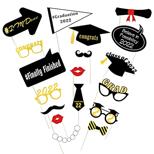 ABOOFAN 2021 Graduation Photo Props Class of 2021 Handheld Photo Booth Props with Wooden Sticks 2021 Graduation Party 18pcs
