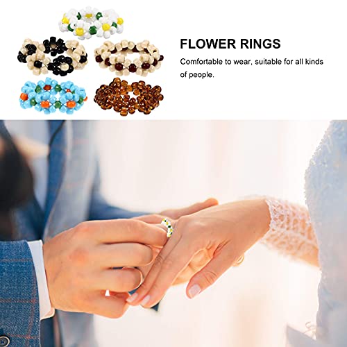 Aboofan, set di anelli con perline a forma di margherita, fatti a mano, con fiore, alla moda, stile boho, da spiaggia, anelli estetici, per ragazze, 5 pezzi