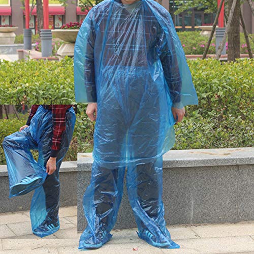 Aboofan - Set da 3 cappotti impermeabili usa e getta in due pezzi, per adulti, antivento, con cappuccio, unisex, in plastica, con cappuccio e copriscarpe, per sport, escursionismo, ciclismo (blu)