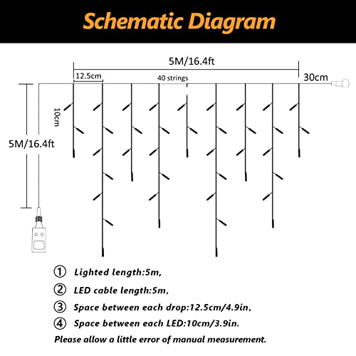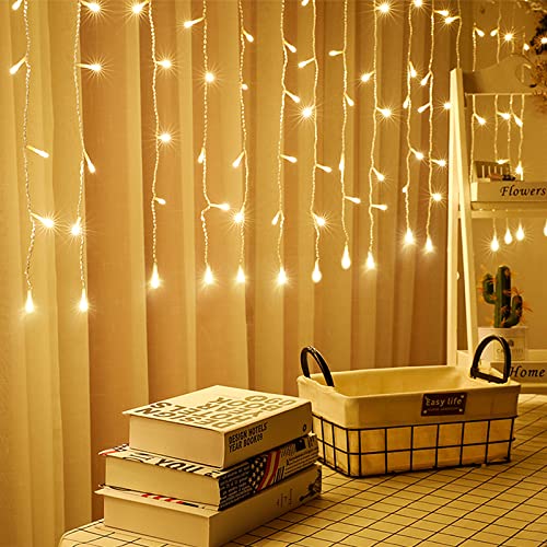 Abosea Tenda Luminosa, 31V Cascata Luci Catene Luminose Stringa di Luce con Linea di Connettori, 8 Modalità LED Festa di Nozze in Giardino di Natale All'aperto al Coperto, Bianco Caldo (200LED)