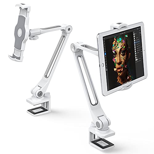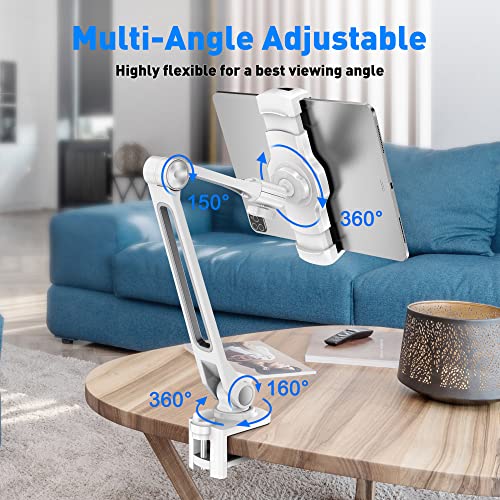 AboveTEK Supporto per iPad/Tablet a Braccio Lungo, Supporto Girevole a 360 ° e con Staffa Morsetti per culla Dispositivi da 4-11 Pollici per Cucina/Comodino/Scrivania da Ufficio/Display Vetrina