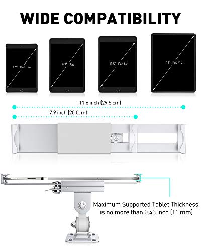 Supporto universale da parete/sotto il mobiletto - universale compatibile con tablet da 7 a 11 pollici tra cui Apple iPad, iPad Pro, iPad Mini, Microsoft Surface, Samsung Galaxy Tab, Google Pixel Slate e Amazon Fire. Godetevi il comodo uso a mani libere dei vostri dispositivi tablet preferiti con il supporto da pa