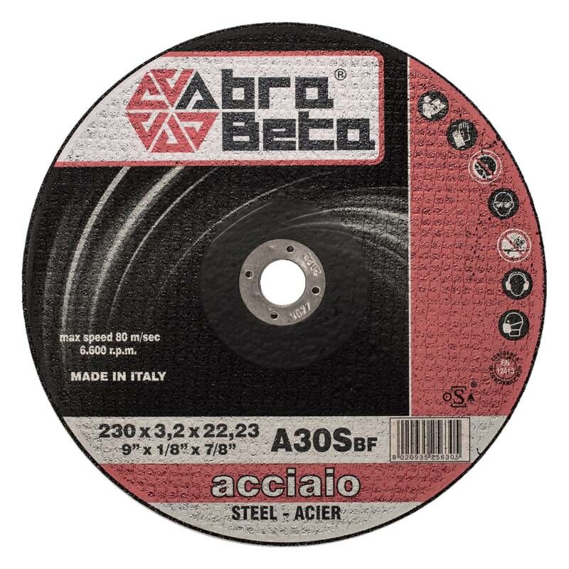 Il disco da taglio A30S di Abra Beta è studiato per il taglio di acciaio normali e medio-legato. Caratteristiche: Centro depresso;