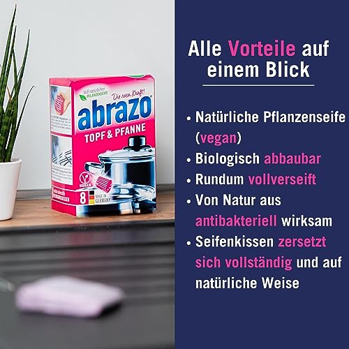 Agisce naturalmente antibatterico. Il cuscino per la pulizia più popolare nelle case tedesche. Pulizia rapida con il detergente per pentole e padelle grazie al sapone naturale vegetale. Anti-graffio e senza residui anche contro lo sporco sulle superfici sensibili della vostra cucina.