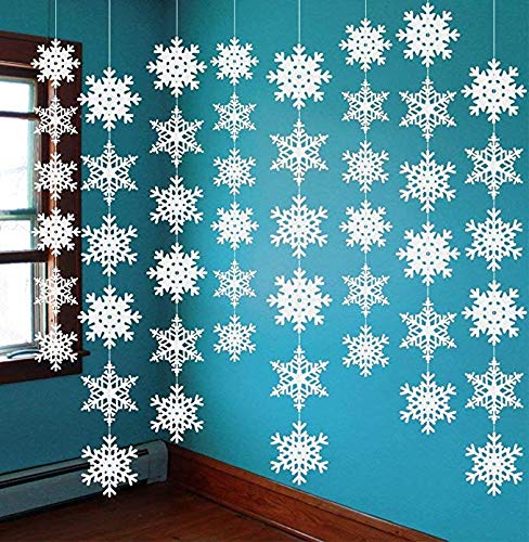 ABREOME Ghirlanda di Fiocchi di Neve per Decorazioni Natalizie, Casa Decorazioni Natalizie per Feste Ghirlande di Neve, Bianco (8 Pezzi)