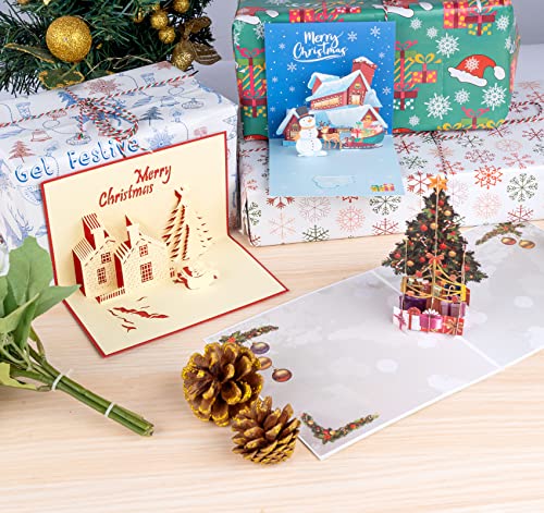 ABSOFINE Biglietti di Natale pop-up, confezione da 9 biglietti di auguri 3D combinati con buste e 2 biglietti di messaggi, colorati sfussi di Natale per regali di Natale, vacanze, Capodanno, famiglia