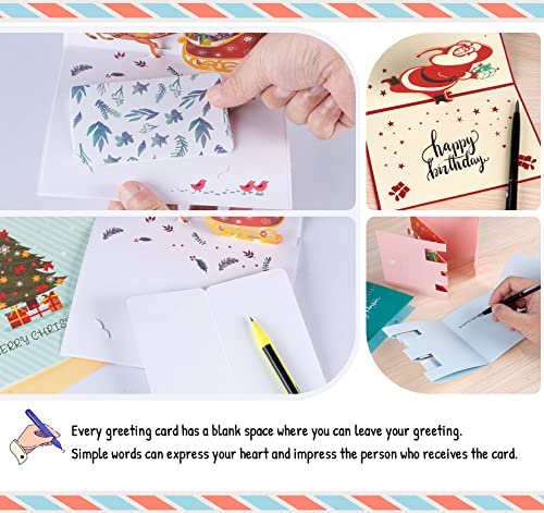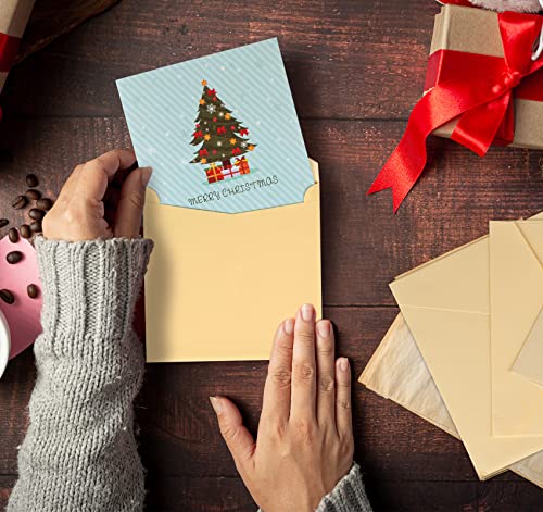 【Atmosfera natalizia】La copertina di ogni biglietto di auguri ha le parole Buon Natale o un motivo natalizio. Progettato con cura con elementi di Babbo Natale, renne, slitta, albero di Natale, scatola regalo, camino di Natale, pieno di atmosfera natalizia e invernale.
