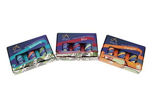 Absolute Aromas Set Miscele di Oli Essenziali Bliss per Beatitudine - 3 pcs da 10ml Oli per Aromaterapia - Referenze De-Stress, Goodnight e Relaxation