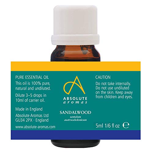 Absolute Aromas Olio essenziale di sandalo 5 ml (santalum austrocaledonicum) - 100% puro, naturale, non diluito, vegano e cruelty-Free - Per uso in diffusori e miscele di aromaterapia