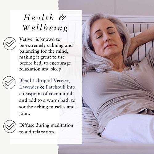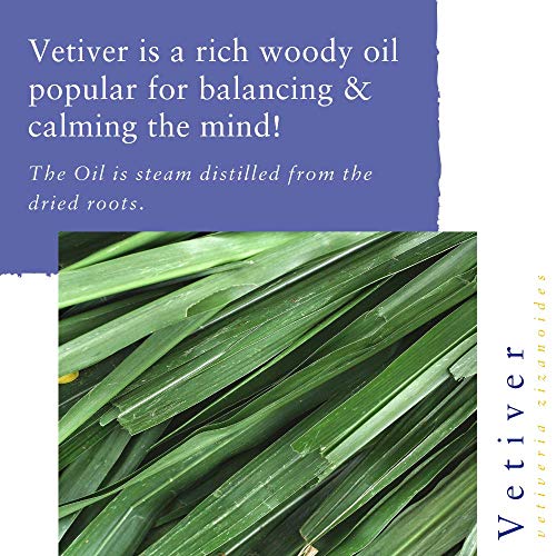 TRANQUILLITÀ - Un olio calmante ideale per la meditazione e la preghiera. Si mescola bene con gli oli essenziali di cedro, lavanda, patchouli e legno di sandalo. La fragranza seducente del vetiver viene spesso suata nei profumi, dopobarba e nei prodotti per la cura della pelle.