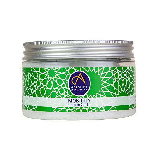 Absolute Aromas Sali da Bagno Epsom Mobility Mobilità 300g - Solfato di Magnesio infuso con Oli Essenziali Puri al 100% - Oli di Menta Piperita, Rosmarino ed Eucalipto