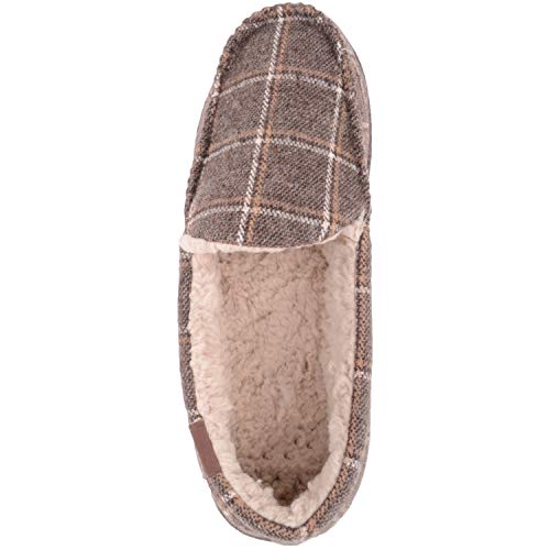 Absolute Footwear Pantofole da uomo in stile mocassino scozzese con interno in pelliccia sintetica, Marrone, 42 2/3 EU