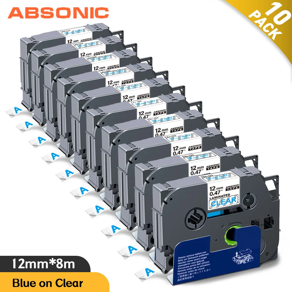 Absonic 10PK Compatible tze-133 tze 133 tze133 tz 133 Tz133 Blue on Clear 12mm*8m Laminated Label Tape for Brother Label Printer