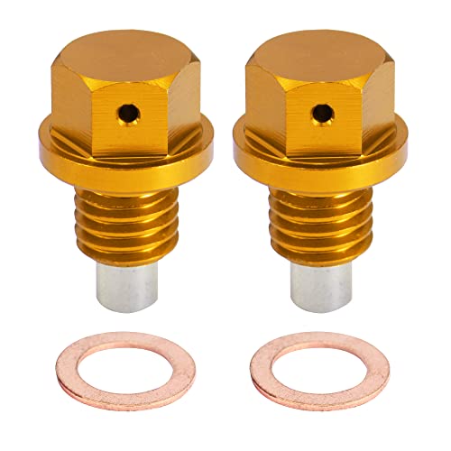 A ABSOPRO Tappo Coppa Olio Motore 2 Set Olio Scarico Tappo Alluminio Lega con 2 Rondella Oro Tono M12x1.75