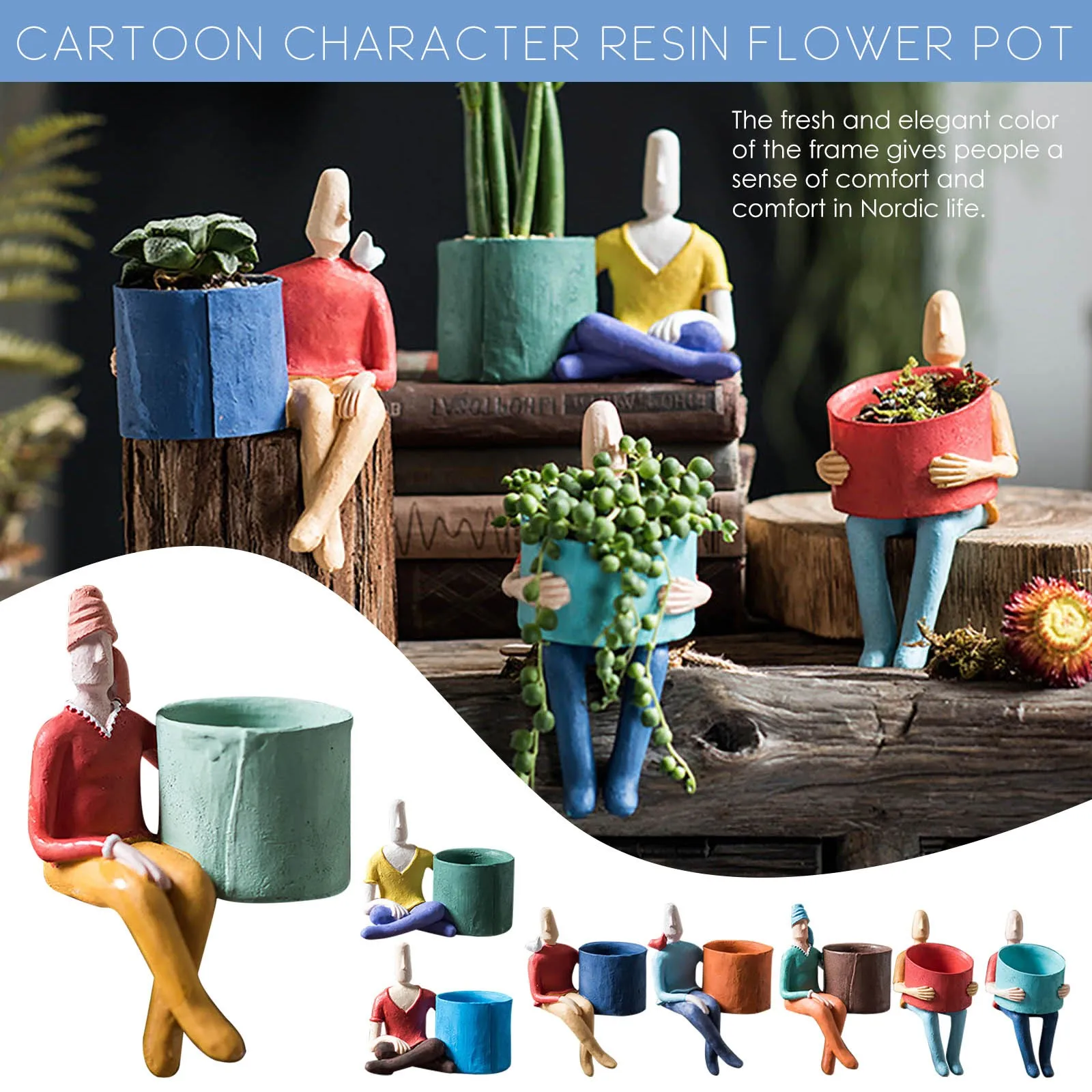 Abstract Cartoon Character Resin Flower Pot Creative Plant Potted Succulent Planting Container Rural Decoration Home Decoration