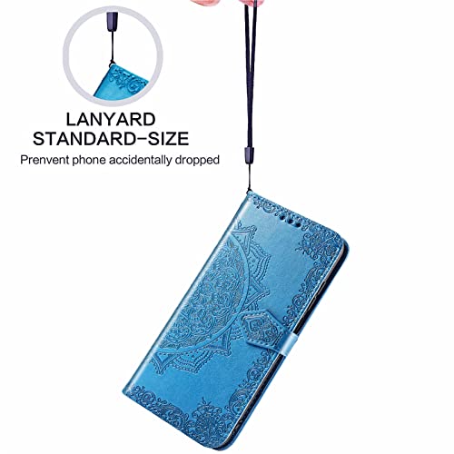 Abuenora Cover per Xiaomi Redmi Note 12 5G / Xiaomi Poco X5 5G Custodia Flip Portafoglio a Libro in Pelle PU Stampa Mandala con Pellicola Vetro Temperato - Blu