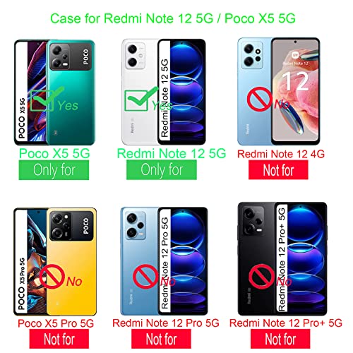 Compatibilità - Questa Custodia Progettato per SOLO con Smartphone Xiaomi Redmi Note 12 5G / Xiaomi Poco X5 5G, la cover NON funziona con altri modelli celullari.