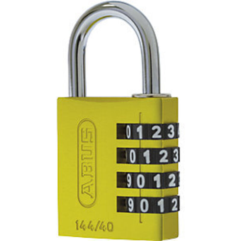 Serratura a combinazione, alluminio, 144/40 Lock-Tag, conf. da 6 pz., giallo. Fornitura = montato. Tipo di prodotto = serrature a combinazione. Serratura = serratura con combinazione. Materiale = alluminio. Colore = giallo. Altezza totale = 77 mm. Altezza staffa = 26 mm. Larghezza della staffa = 21.5 mm. Spessore della staffa = 6 mm. Combinatore resistente alle abrasioni per una leggibilità duratura nel tempo e una buona protezione dalla corrosione. Corpo del lucchetto in alluminio - peso ridotto. Codice numerico impostabile a piacimento. Serratura a combinazione in alluminio con codice numerico impostabile a piacimento e combinatore in plastica . Il codice numerico è facile da impostare grazie al combinatore di grandi dimensioni . Leggibilità dei numeri buona e duratura, perché i numeri non sono stampati ma incisi nel combinatore. In questo modo restano leggibili a lungo.