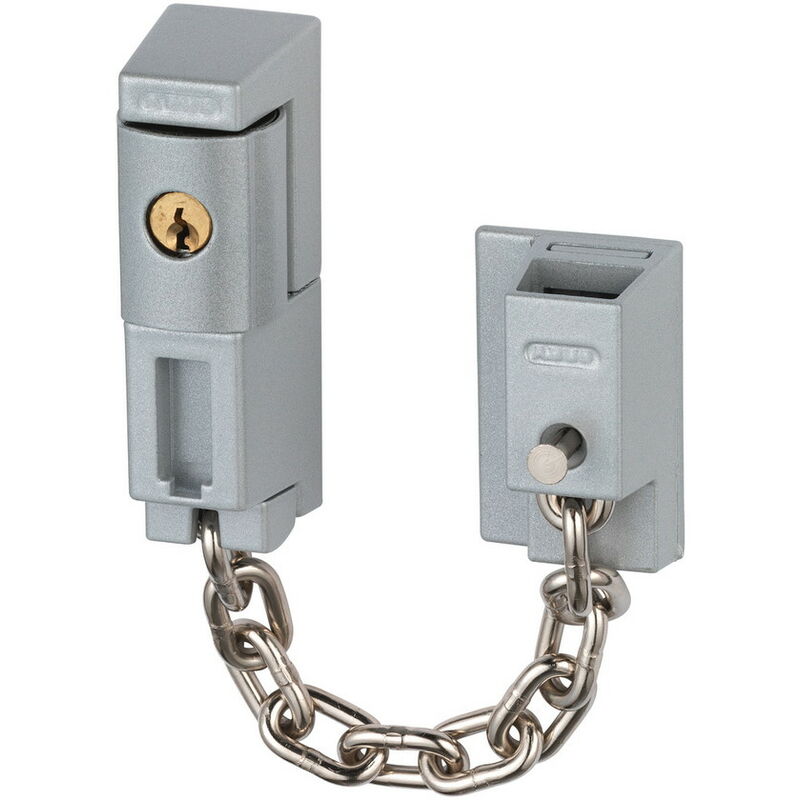 A 4 perni Lunghezza catena visibile: 15 cm 2 chiavi incluse Utilizzo < /p> Per porte d'ingresso di case e appartamenti Adatto anche per porte con inserto in vetro o con ante con inserto in vetro. profilo metallico stretto Uso interno ed esterno con chiave Versioni Colori: argento