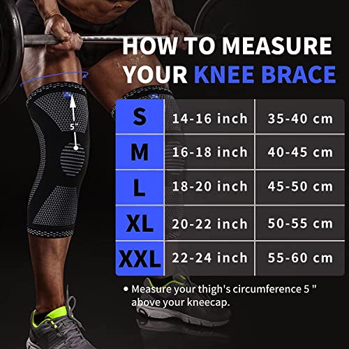 Ottimo supporto per il ginocchio e protezione completa: i nostri supporti per ginocchio sono progettati con compressione stretta, progettati per fornire un supporto stabile per le ginocchia, alleviare lo stress sull'articolazione del ginocchio durante l'esercizio fisico e ridurre gli infortuni sportivi. Fornisce un supporto muscolare ottimale e una protezione a 360° durante gli allenamenti e le attività quotidiane