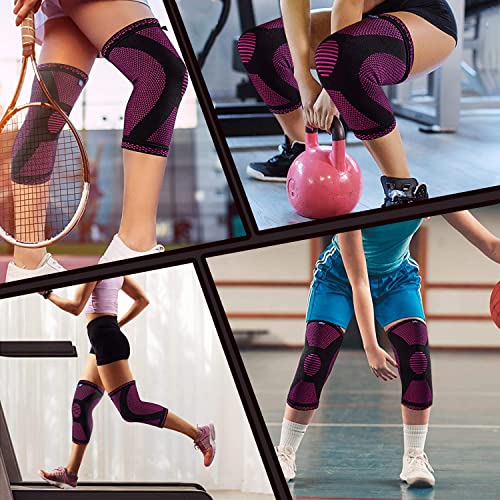 ABYON Ginocchiera per uomini e donne (1 paio), maniche a compressione per ginocchio per artrite, dolori articolari, lesioni legamentose, lacrima al menisco, corsa (Small (confezione da 2), nero-rosa)
