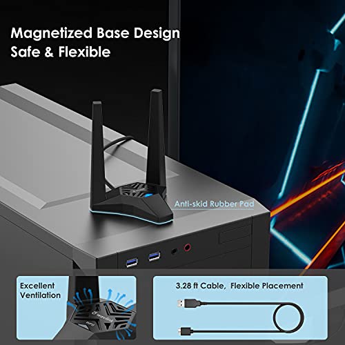 【WPS Easy Setup & Flexible Placement】: Adotta la crittografia WPS one-key (supporta WPA / WPA2, WPA-PSK/WPA2-PSK), consentendo una connessione sicura. Il design della base magnetica con un cavo da 1 m garantisce un posizionamento flessibile, adattatore wifi ideale per PC desktop.