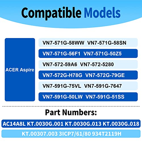 AC14A8L AC15B7L KT.0030G.001 Batteria Compatibile per Acer Aspire V15 Nitro VN7 VN7-571 VN7-571G VN7-572 VN7-572G VN7-591 VN7-591G VN7-791 VN7-791G VN7-792 VN7-792G VN7-592 VN7-592G, 11,4 V 52.5 Wh