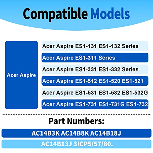 AC14B18J AC14B13J Batteria Compatibile per Acer Aspire E3-111 E3-112M ES1-111M ES1-131 ES1-521 ES1-531 V3-111 V3-111P V5-122 V5-122P V5-132 Acer Chromebook 11 CB3-111 13 CB5-311 15 C910