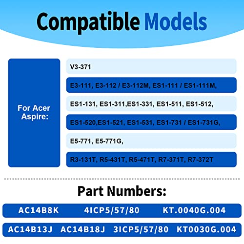 AC14B8K 4ICP5/57/80 Batteria Portatile per Acer Chromebook CB3-111 CB5-311 CB5-571 CB3-531 Swift 3 SF314-51 SF314-52 ES1-512 ES1-511 R5-471T R7-371T R3-131T ES1-511 ES1-111M R7-371T Aspire 5 A515-51