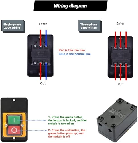 AC220V/380V 10A Interruttore a Pulsante per Trapano Elettrico, ON/OFF Pulsante Impermeabile Pulsante Interruttore a Pulsante Elettrico Accessori per Macchine Utensili, con Scatola Impermeabile e Antip