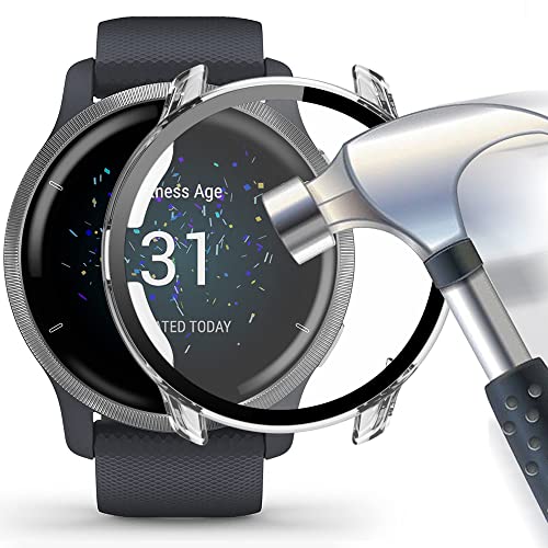 [Design perfetto]: custodia per PC molto resistente + vetro temperato con protezione per lo schermo, copre l'intera parte anteriore e i bordi curvi dell'venu 2, protegge da graffi, cadute e urti.