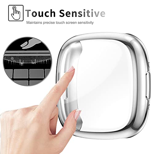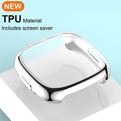 Acadeny[2 Pezzi Custodia Compatibile con Fitbit Versa 4/Sense 2, Argento Custodia Protettiva a Tutto Tondo con Protezione per Lo Schermo, [antimacchia] [AntiGraffio] Custodia Protettiva in TPU