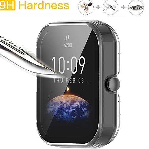 Acadeny 2 pezzi Custodia rigida compatibile con Amazfit Bip 3/Bip 3 pro con pellicola protettiva,9H Durezza Hart PC Case sottile in vetro temperato per Smart, Trasparente