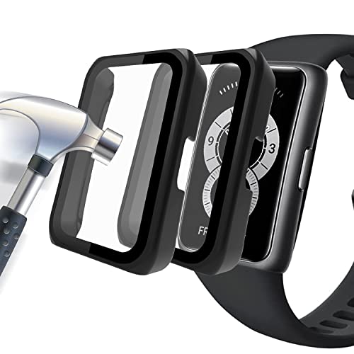 Acadeny 2 pezzi Custodia rigida compatibile con Huawei band 6/band 7/Honor band 6 con pellicola protettiva,9H Durezza Hart PC Case sottile in vetro temperato per Smart, Nero