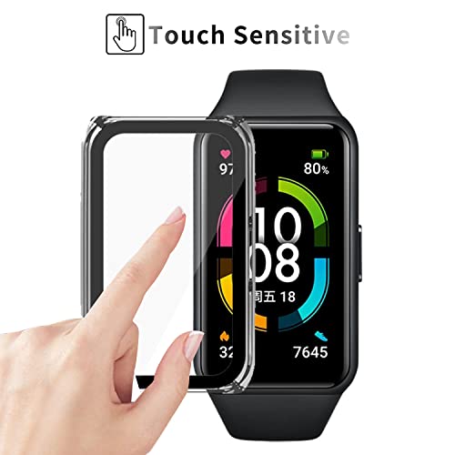 [Design perfetto]: custodia per PC molto resistente + vetro temperato con protezione per lo schermo, copre l'intera parte anteriore e i bordi curvi dell'Huawei band 6/Honor band 6, protegge da graffi, cadute e urti.