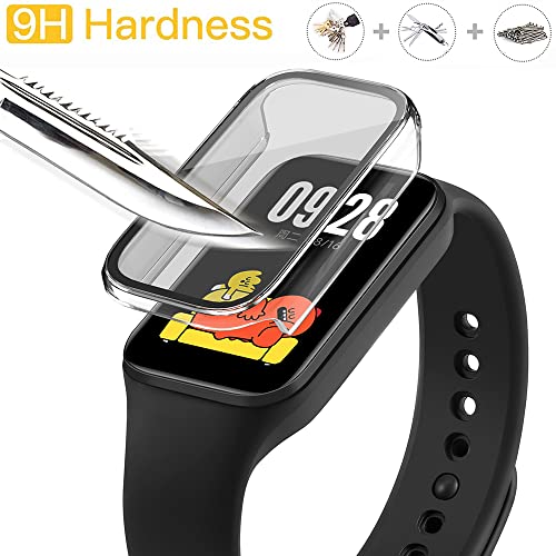 Acadeny 2 pezzi Custodia rigida compatibile con xiaomi Redmi band 2/Amazfit band 7 con pellicola protettiva,9H Durezza Hart PC Case sottile in vetro temperato per Smart, Trasparente+Nero