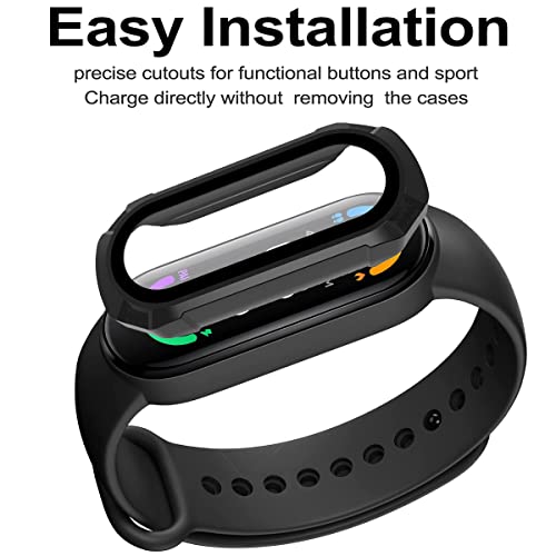 Acadeny 2 pezzi Custodia rigida compatibile con xiaomi band 4/5/6 con pellicola protettiva,9H Durezza Hart PC Case sottile in vetro temperato per Solo i cinturini originali si adattano, Nero