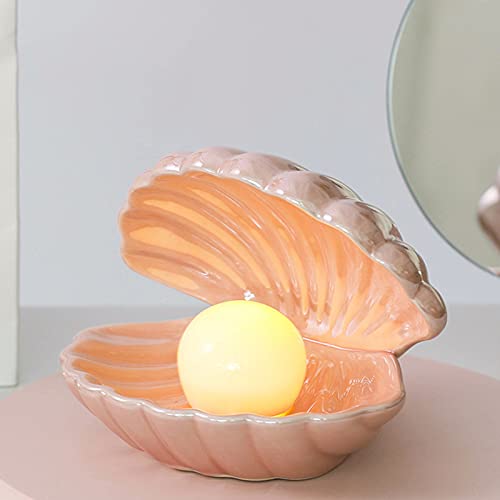 ACAREY Luce notturna a forma di conchiglia, con perle di conchiglia, luce notturna in ceramica, lampada da scrivania, decorazione per la camera da letto (rosa)
