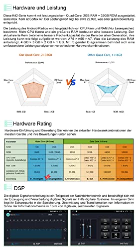 【Car Stereo Sistema】 Android Sistema, Quad Core, Cortex-A7 MP4, Max. 1,3 GHz, 2GB RAM e 32GB ROM, garantire un funzionamento regolare e una risposta più rapida, display da 9 pollici ad alta risoluzione 1280 x 720 pixel.
