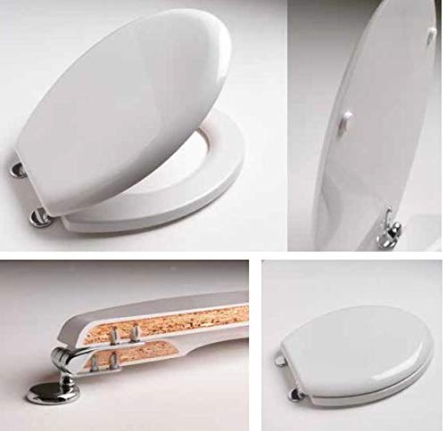 ACB/COLBAM Copriwater in Legno Rivestito di Poliestere per Ideal Standard LIUTO Grigio SUSSURRATO Cerniera Cromo-Sedile-ASSE WC