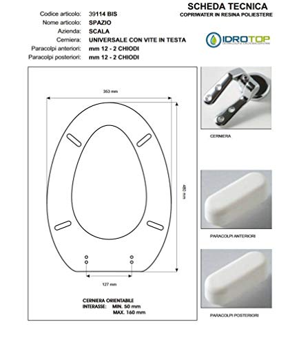 ACB/COLBAM Copriwater in Legno Rivestito di Poliestere per Scala Spazio Bianco IS Cerniera Cromo-Sedile-ASSE WC - Variante Bianco Euro