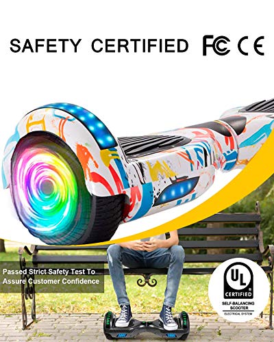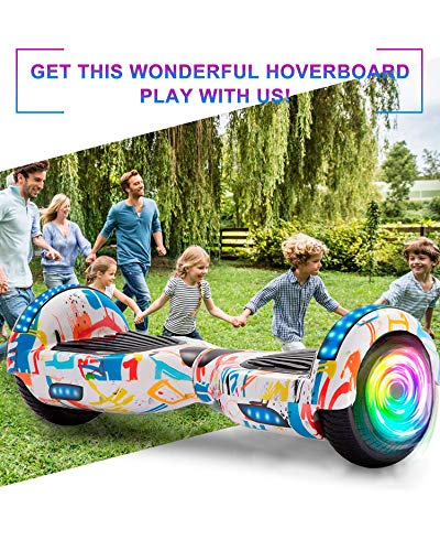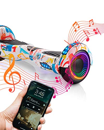 ACBK - Scooter Elettrico Hoverboard Autobilanciato con Ruote LED da 6.5'' (App + Altoparlante Bluetooth + Luci a LED + Borsa per Il Trasporto) velocità Massima: 12 km/h - (Graffiti)