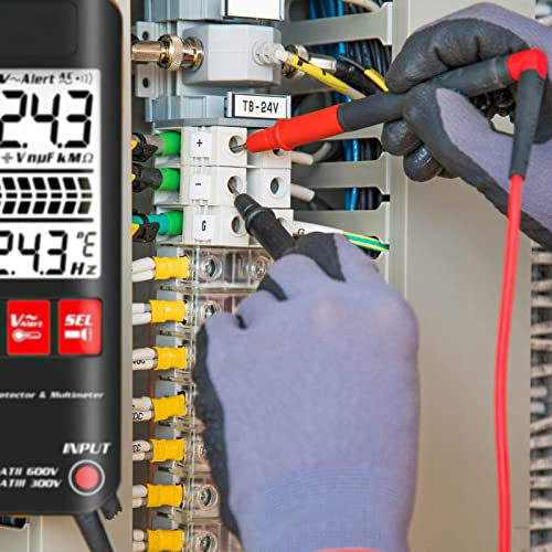 【Controllo filo vivo/neutro】 Multimetro digitale, sicuro e facile da distinguere il filo vivo/neutro confrontando la forza della tensione rilevata. Il filo che vede il segnale di tensione più forte è un filo sotto tensione.