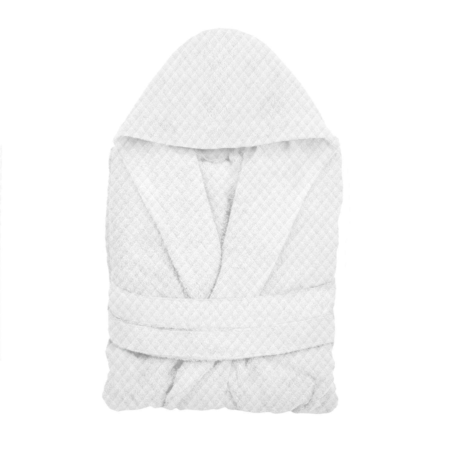 Diamond è la linea tessile bagno morbida e colorata! L'accappatoio è realizzato in misto cotone e offre ottima assorbenza per asciugare la pelle dopo la doccia o il bagno. Completo anche di pratico cappuccio e ampie tasche, offre massima avvolgenza e ottima vestibilità grazie alla cintura regolabile. Il decoro a piccoli rombi e la soffice trama color bianco lo rendono un accessorio davvero indispensabile per completare il bagno con stile e funzionalità. Grammatura 400 gsm. Taglia: L/XL. Lavabile con ciclo in lavatrice a 40°.
