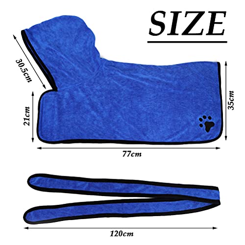Accappatoio per Cani 50 Cm Accappatoio Cane Microfibra con Cappuccio e Cinta Blu Asciugamano Cane Asciugatura Rapida M Dimensioni per Il Bagno o Camminare Sotto la Pioggia