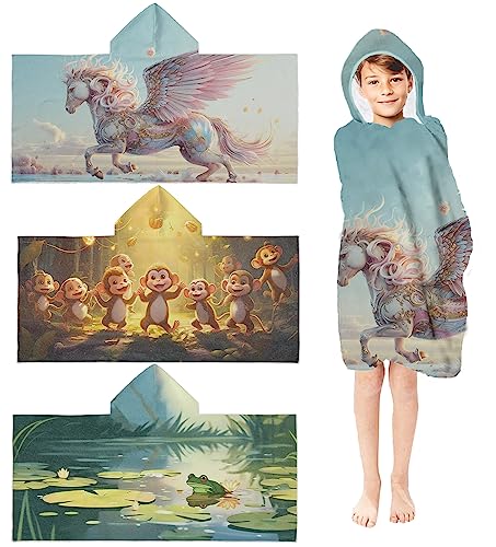Accappatoio con Cappuccio per Bambini, Asciugamano da Spiaggia Perfetto Anti-Sabbia per Ragazzi e Ragazze, Accappatoio Microfibra per Bambini dai 5 ai 12 Anni