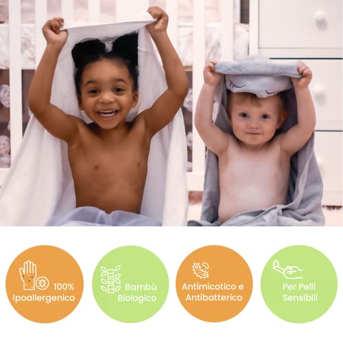 100% Bambù Organico - Asciugamani neonato bagnetto JM 100% in bambù adatti come baby asciugamani, regali nascita bimba e regali neonati. I prodotti neonato JM sono lavabili in lavatrice, in un sacchetto per bucato per mantenere la morbidezza degli asciugamani bambini