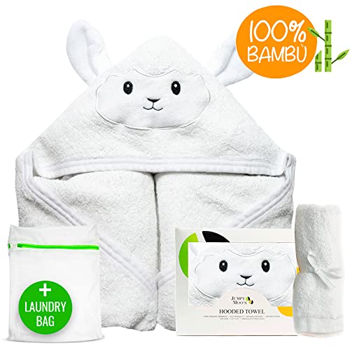 JM Set Accappatoio Include Asciugamano Con Cappuccio E Borsa Per Il Bucato Neonato - In Bambù Ipoallergenico (90x90 cm) - Regalo Nascita Bimbo (Agnello)